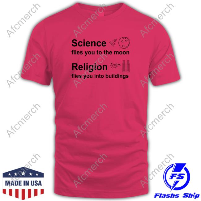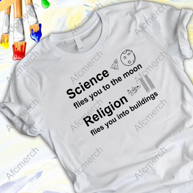 Official Gottlose Mode Merch Science Flies You To The Moon Religion Flies You Into Buildings T Shirts